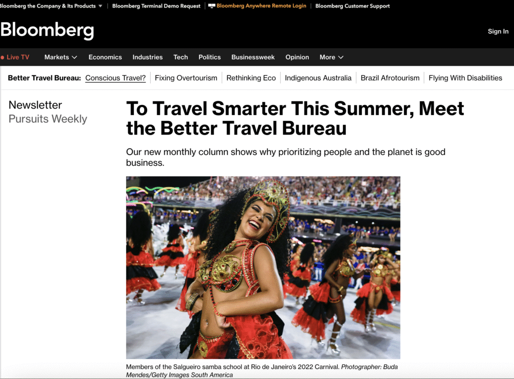 A comprehensive look at my published work, spanning features, guidebooks, branded cultural content and strategy, editorial leadership, as well as consumer, business and cultural reporting on destinations around the world.